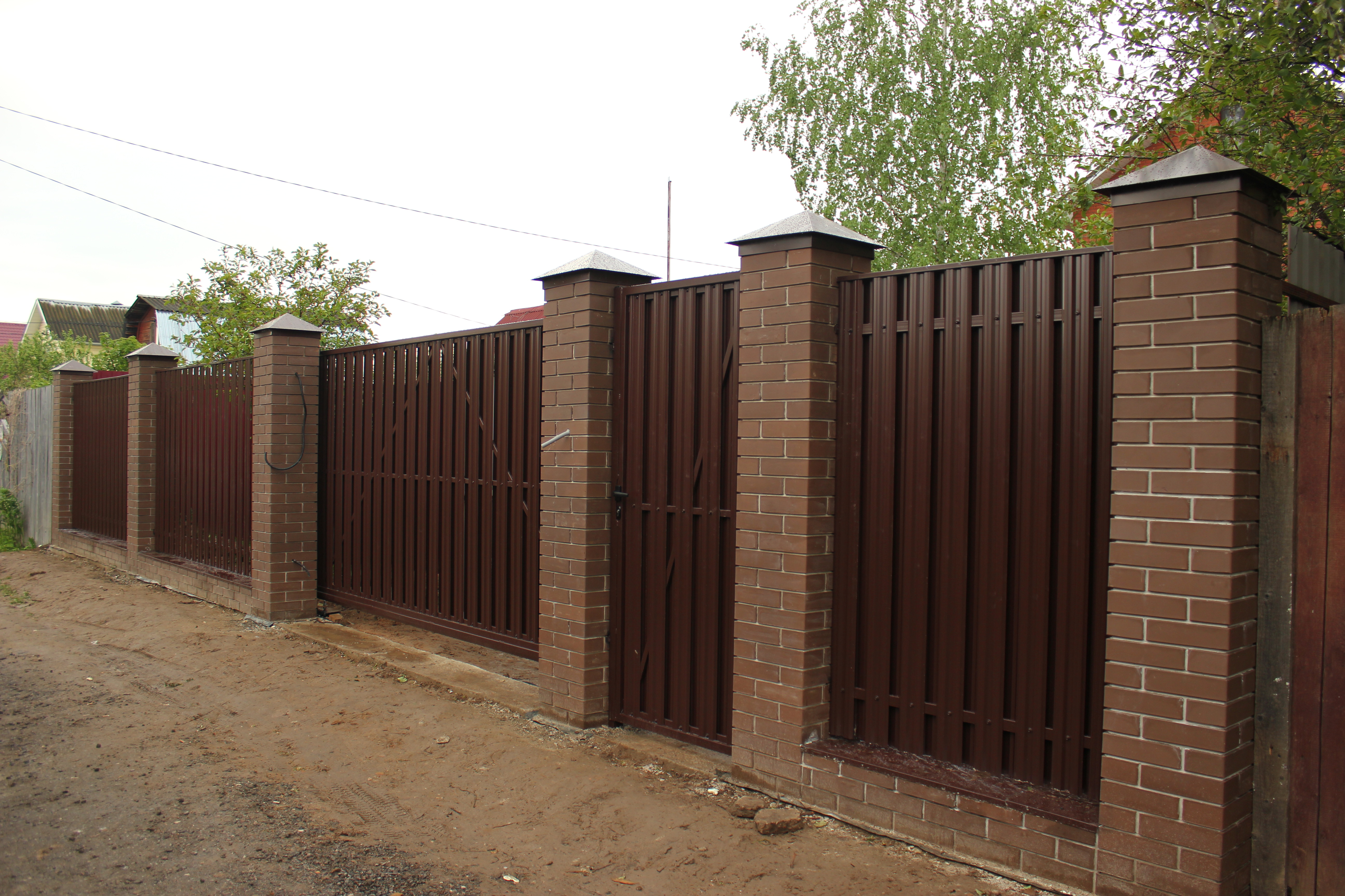 Для участков не более 10 соток подойдет забор из евроштакетника, а для более обширных территорий идеально подойдет ограждение из профнастила (металлопрофиля).